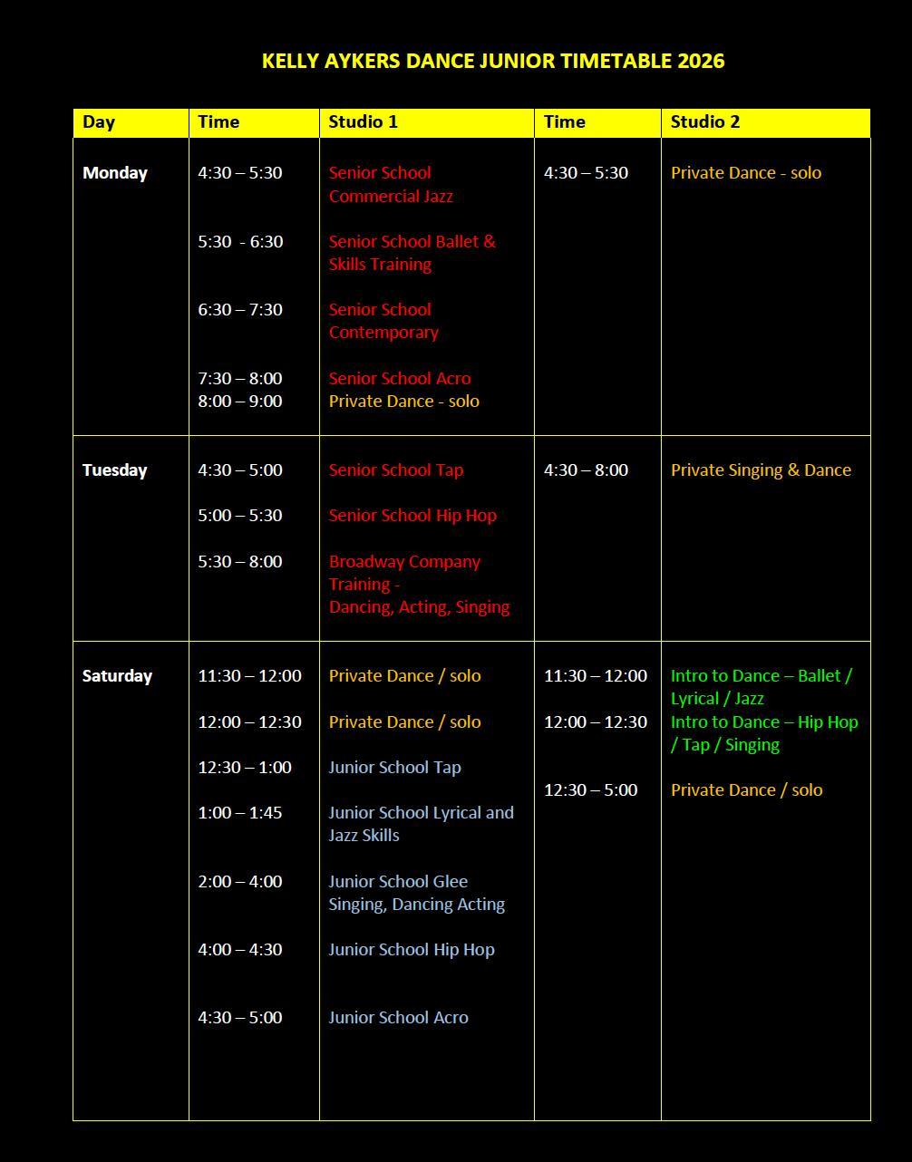 Press the 'Casual/Junior Dance Enquiry' button at the top of the page or you can contact us anytime at: fulltimedance@kellyaykers.com.au